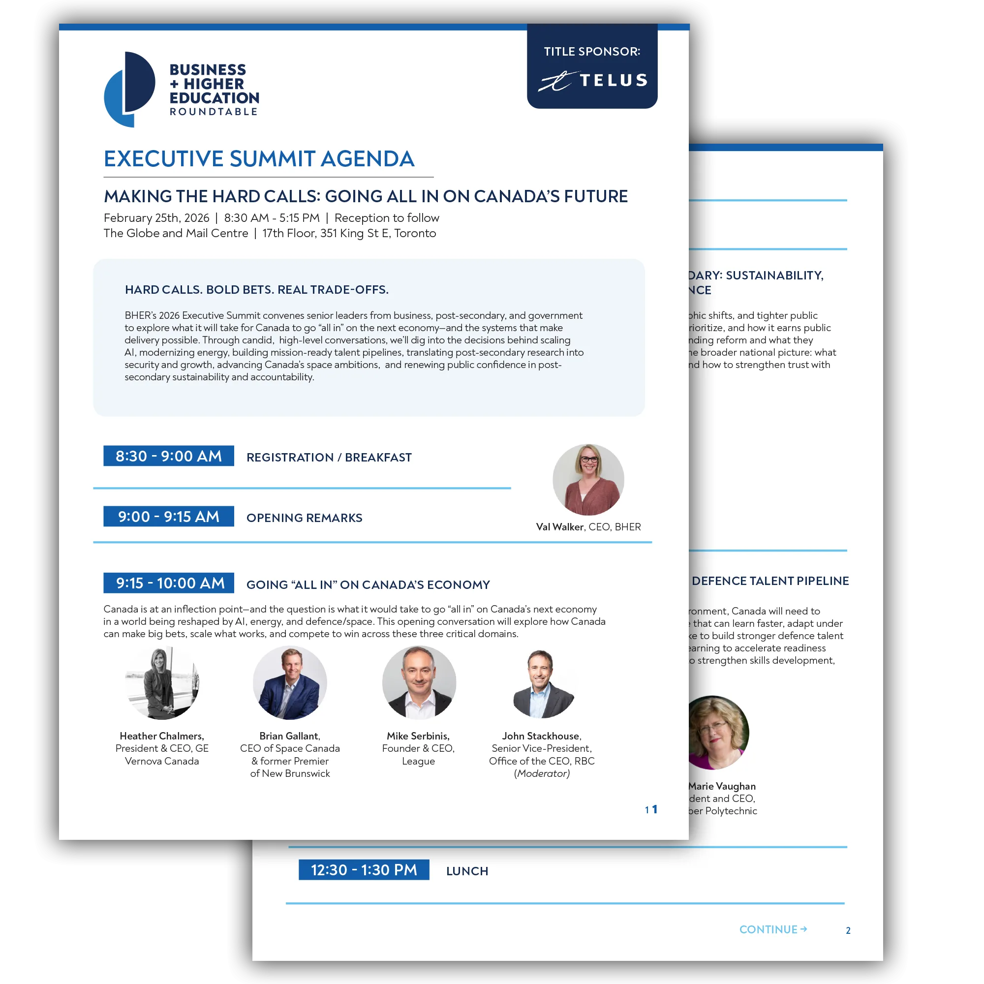 BHER’s 2026 Executive Summit convenes senior leaders from business, post-secondary, and government to explore what it will take for Canada to go “all in” on the next economy—and the systems that make delivery possible. Through candid, high-level conversations, we’ll dig into the decisions behind scaling AI, modernizing energy, building mission-ready talent pipelines, translating post-secondary research into security and growth, advancing Canada’s space ambitions, and renewing public confidence in post-secondary sustainability and accountability.